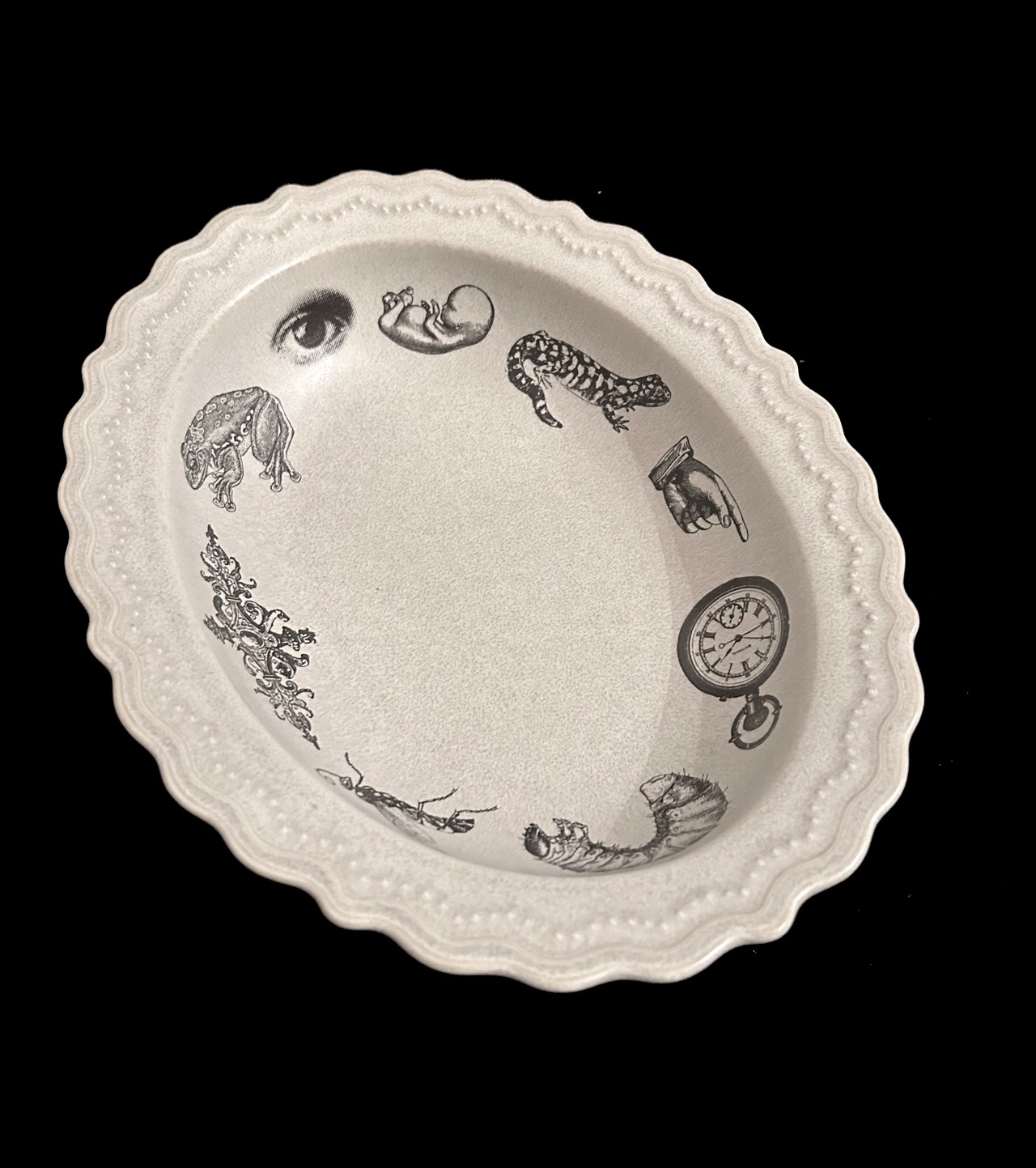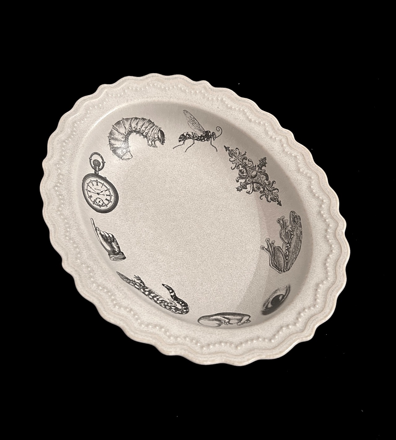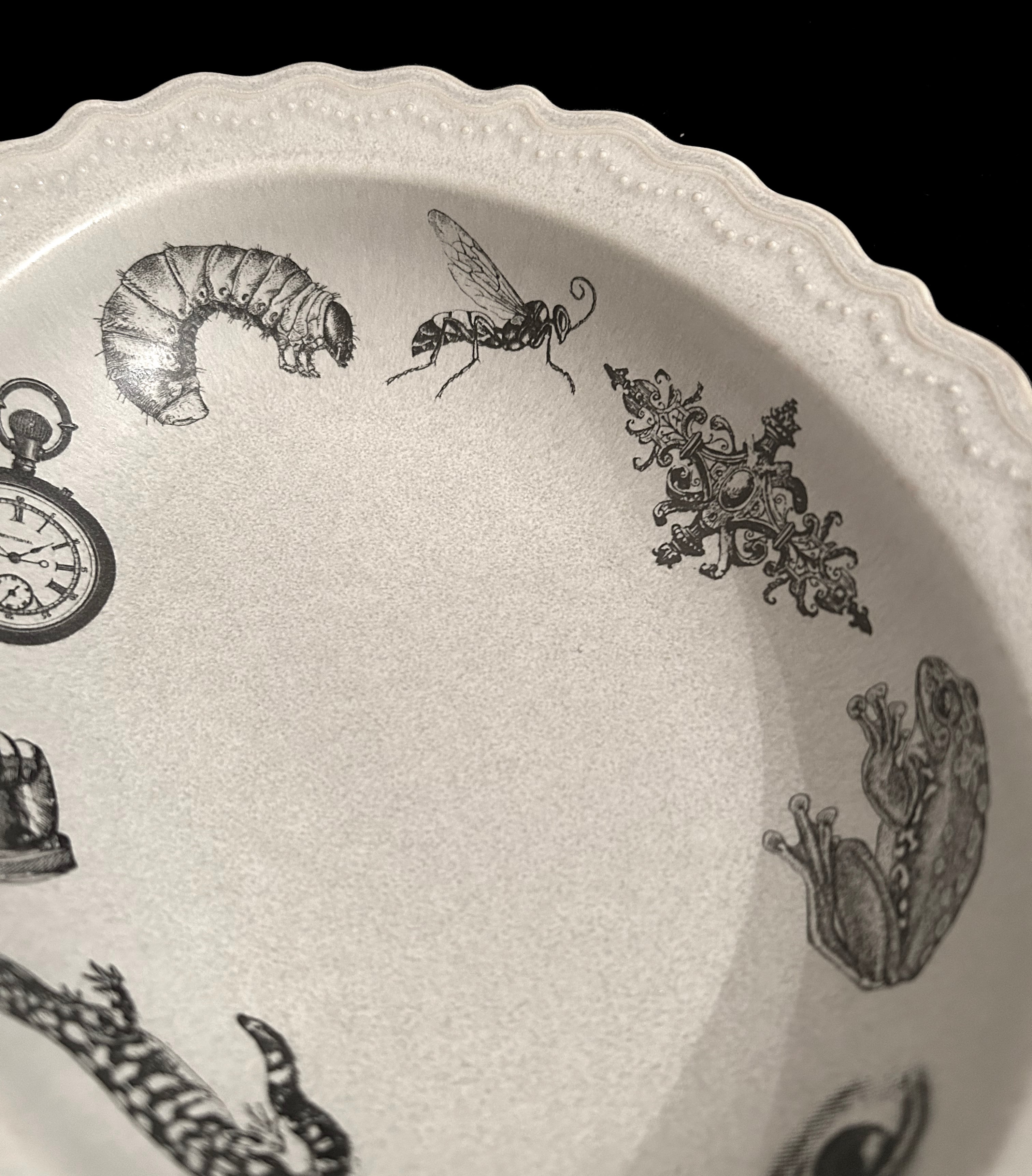 アンティーク調の美しいレリーフが特徴のカレー皿です。レースのような緻密な縁が施されたこのボウルは、カレーだけでなくパスタやシチューなど、さまざまな料理を引き立てるアイテムとなります。大人可愛いデザインが魅力で、特別なディナーやホームパーティーなど、どんなシーンにもぴったりです。
