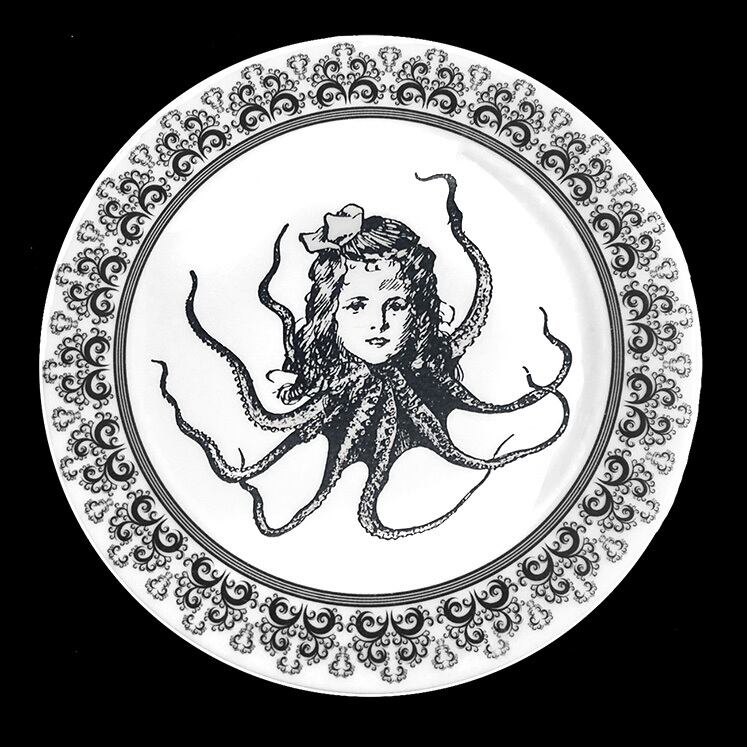 蛸少女の繊細な絵柄のダークファンタスティックなお皿。