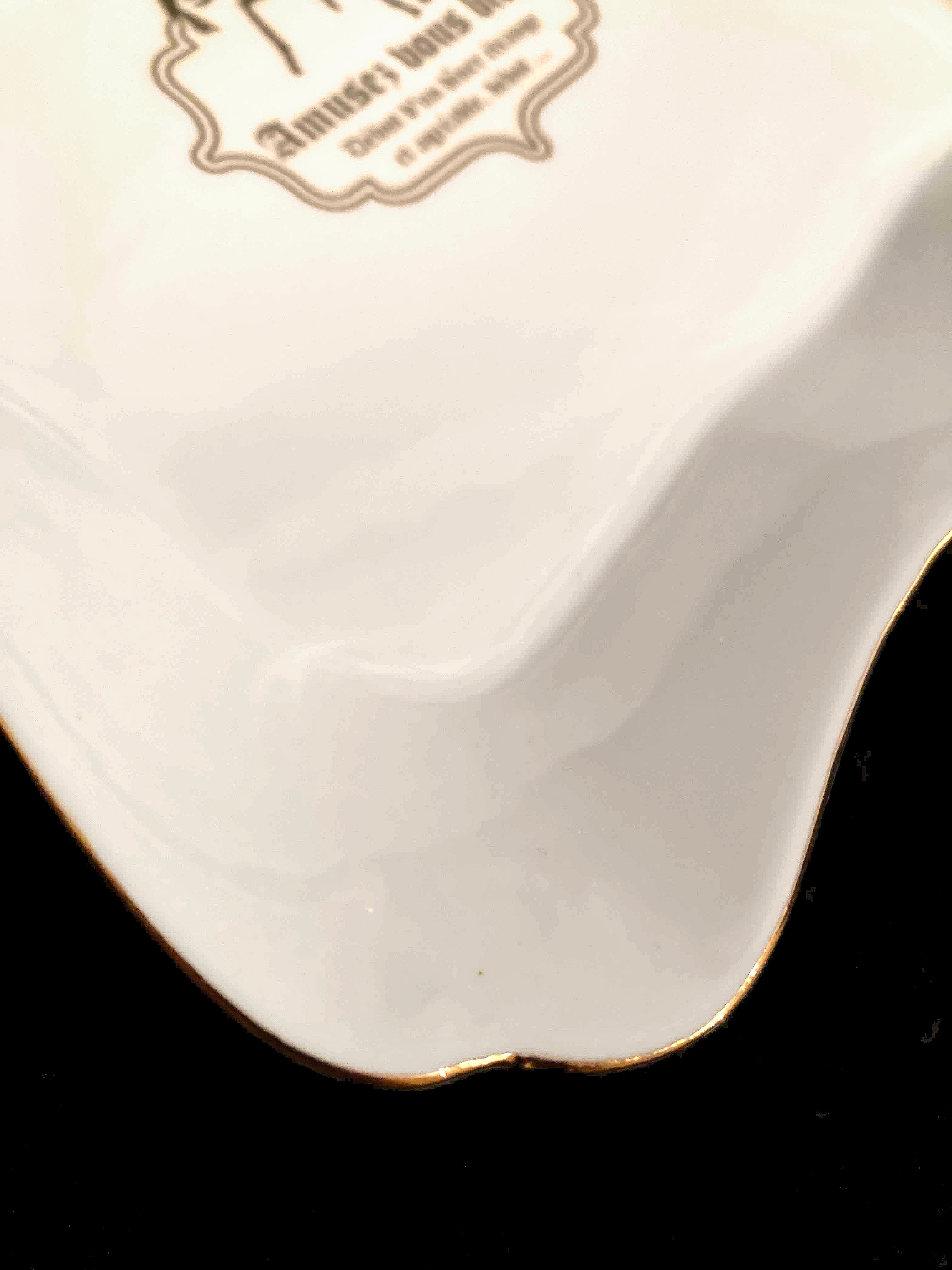 縁に金彩が施された、高級感あふれるデザイン。フリルが華やかさをプラスしており、おもてなしのシーンや、特別な日にもぴったりです。